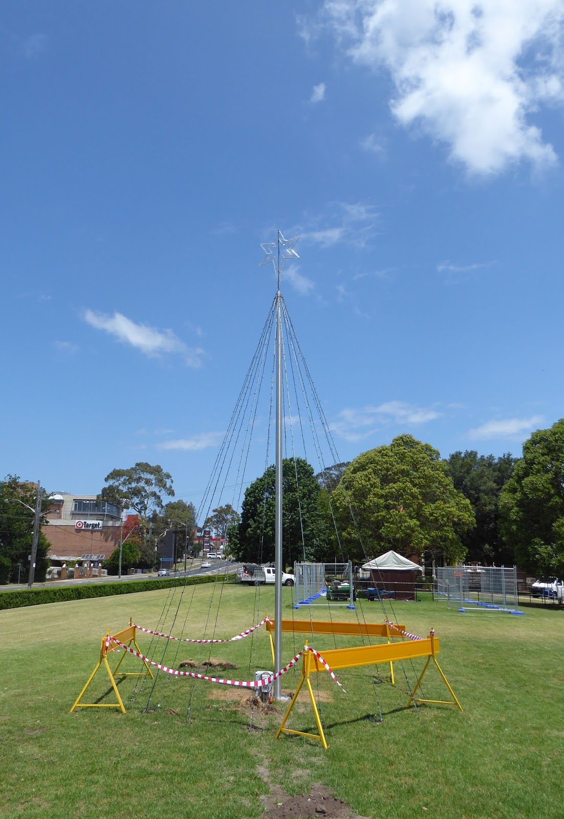 | These lights face the busy Pennant Hills Road. The trees with the white lights are interesting because they are little tripods draped with green mesh and lights. Very effective! |